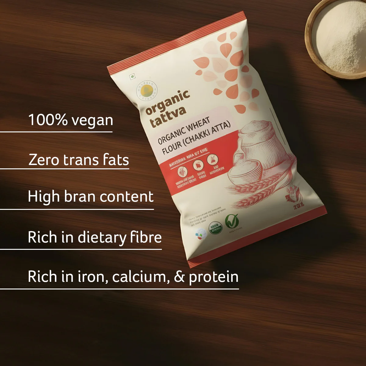 Organic Tattva’s Whole Wheat Flour is made from premium-quality grains, sourced directly from trusted organic farms. Our chakki Atta made with state of the art machine with no human touch , which preserves natural nutrition and flavor.